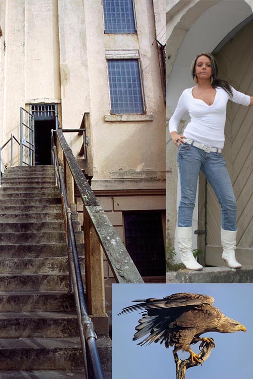 Hier haben wir die Fotos von einem Seeadler, von Model Sonja und einer Treppe des Gefängnis Alcatraz, daraus erstellte ich das Composing "Ladysclub".