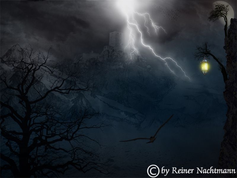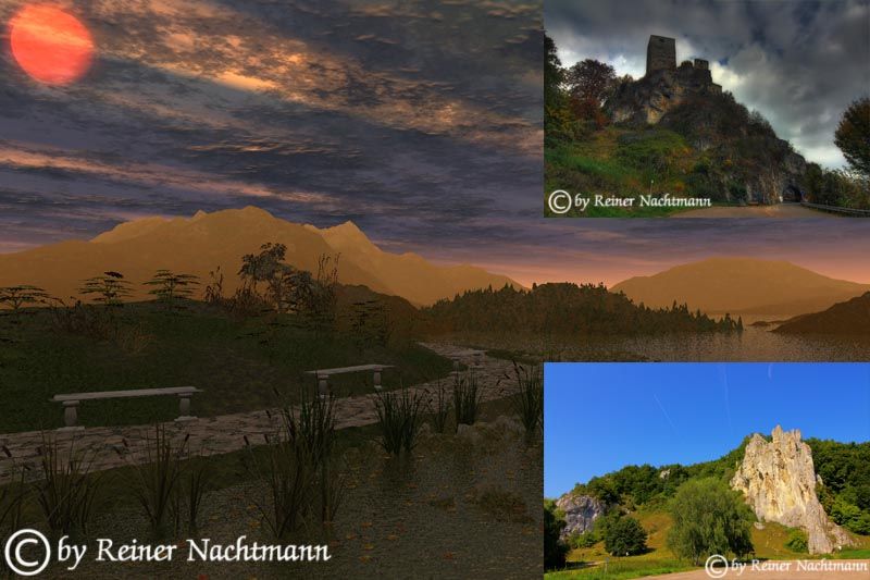 Die Idee zu diesem Composing kam mir als ich in einer Zeitschrift ein ähnliches Foto sah. Ich mußte unbedingt versuchen auch sowas und zwar mit einem Foto der Burgruine aus meiner Heimat auf die Reihe zu bekommen. |