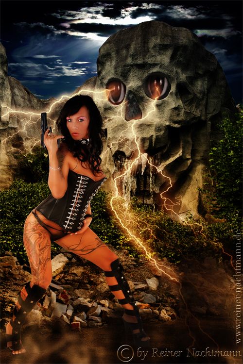 Ein Composing" mit einem Hintergrundbild welches ich im Phantasialand in Brühl aufgenommen habe. Die Frau hat wie immer mein Bruder im Fotostudio abgelichtet. Nachdem ich diese beiden Bilder zusammengefügt hatte ließ ich meiner Phantasie freien Lauf in dem ich Teile aus weiteren 3 Bildern integrierte und zusätzlich noch Blitze und Rauch mit diversen Pinselspitzen hinzufügte. |