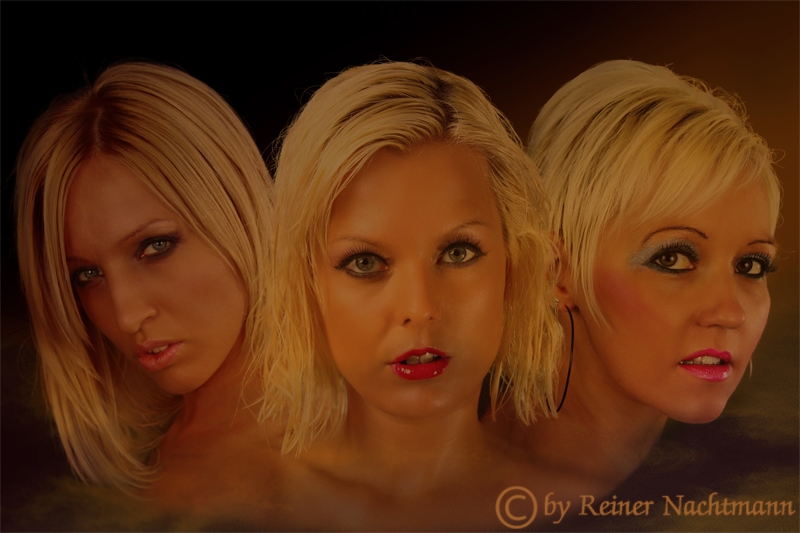 Bei diesem Composing habe ich lediglich 3 Portraits zu einem zusammengefügt, der Hintergrund wurde mit einem Verlauf und Pinselspitzen erstellt. |
