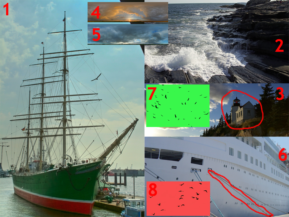 Ein Segelschiff, die Rickmer Rickmers hatte ich bei einem Besuch in Hamburg fotografiert also konnte ich auch schon loslegen. |
