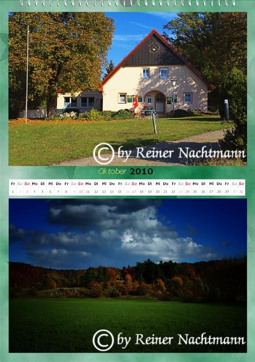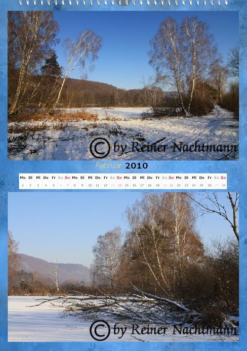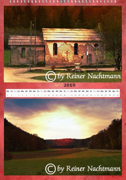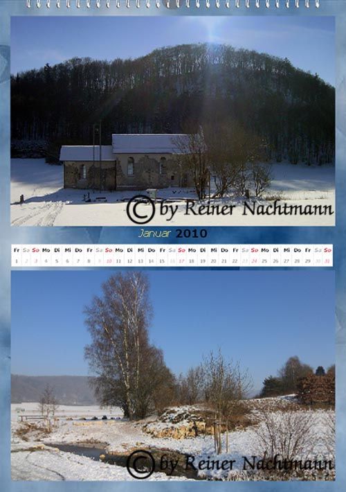 Für 2010 dachte ich mir mach doch mal einen Wandkalender mit Motiven aus deiner Heimat. Da ich in letzter Zeit schon einige Fotos (alle von mir selbst aufgenommen) hatte war die einzige Schwierigkeit die passenden Fotos dafür auszuwählen (wer die Wahl hat, hat die Qual).