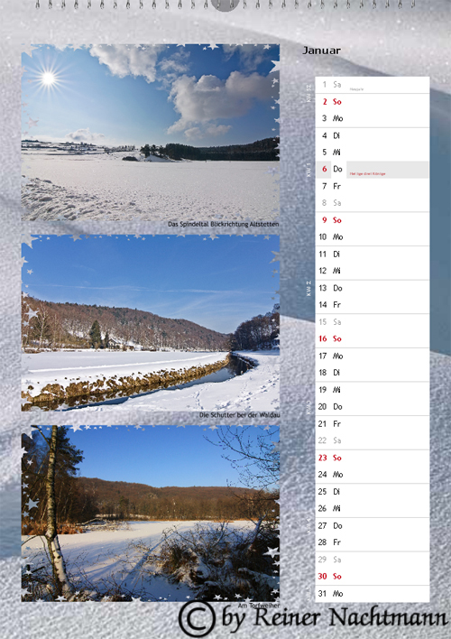 Diese Version des Kalenders mit 3 Fotos je Seite habe ich versucht etwas "ausgefallener" zu gestalten.