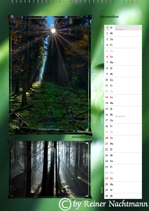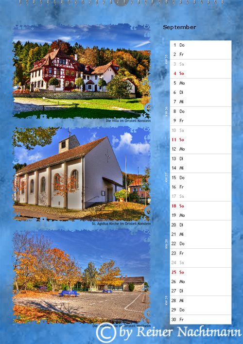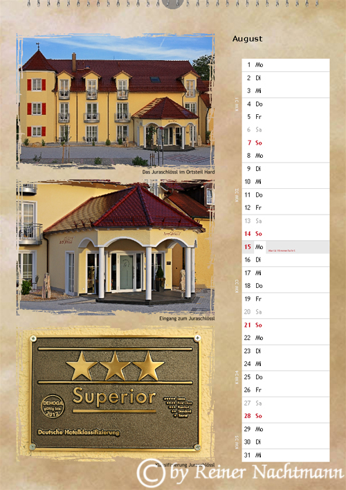 Diese Version des Kalenders mit 2 Fotos je Seite versuchte ich eher etwas konservativer zu gestalten.