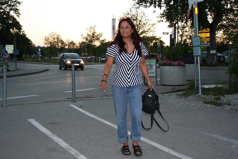 Samstag 21 Uhr in der Nähe der Schiffsanlegestelle in Prien am Chiemsee, mit hastigen Schritten und einem breiten Grinsen im Gesicht ist "Chiemsee-Frau" Bianca auf dem Weg in's Restaurant.