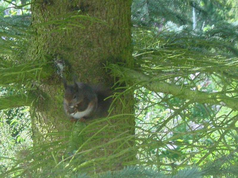 Dieser Baum auf dem sich dieses Eichhörnchen vergnügt steht genau vor dem Küchenfenster meiner Mutter. Wahrscheinlich schaute es zum Fenster rein um nachzusehen was es zu Essen gab !!!