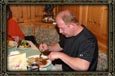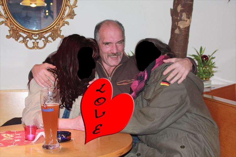 Dieses Foto entstand 2006 in Berchtesgaden. Es zeigt meinen Bruder Manni (Künstlername "Capo") beim Essen. Aufgenommen wurde dieser Schnappschuß von seiner Freundin "Zwetschge". Essen ist eine seiner Lieblingsbeschäftigungen und auf gutes Essen legt er auch besonderen Wert. Diese Essen ist wohl sehr lecker, was man ihm an seinem Grinsen ansieht !!! |