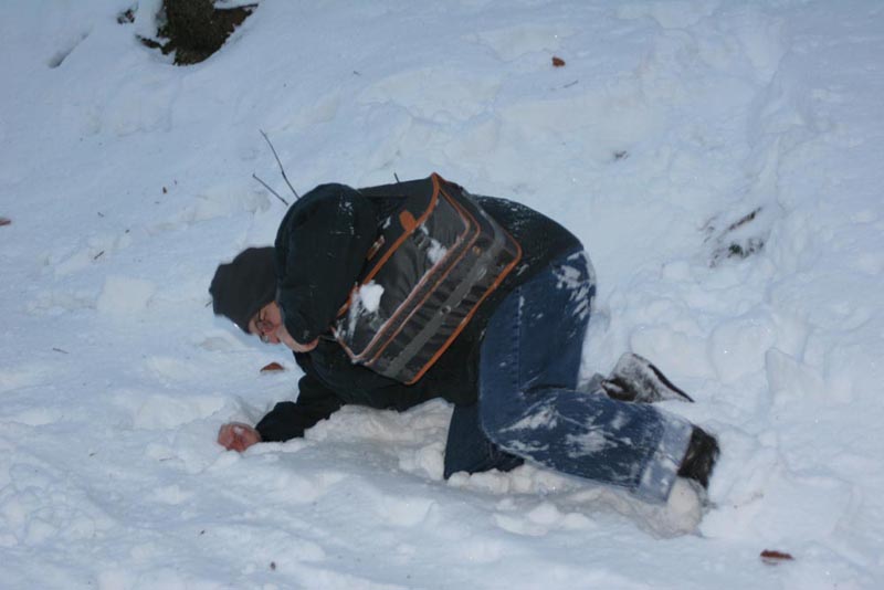 Samstag 22.12.2007 so gegen 17 Uhr 30 machten wir uns zu dritt auf den Rückweg von Schloss Neuschwanstein, der Abstieg war teilweise sehr steil und die dunkelheit brach auch schon herein ... tja plötzlich fehlte jemand und wir waren nur noch zu zweit ... als wir uns umblickten trauten wir unseren Augen nicht ..."Freund Pitter" krabbelte auf dem schneebedeckten Boden rum ... wir natürlich sofort Kamera an ... und "schießen" was das Zeug hielt ! |