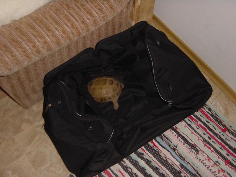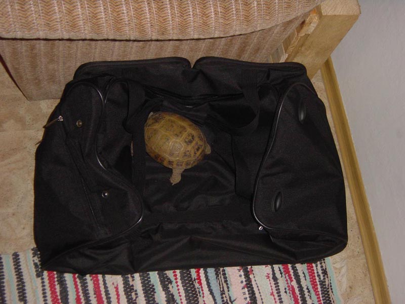 Am 10.10.07 machte das "Gretchen" mal wieder einen Rundgang im Haus meiner Mutter. Erst hat sie mal geschaut was so alles unter dem Schrank und in den Zimmern los ist ... tja und in einem Zimmer stand eine Reisetasche mit offenem Reißverschluß, soll heißen die Tasche war offen. Irgendwann wollte Hr. Huhn (ihm gehört die Schildkröte) mal nach seiner Schildkröte schauen um zu sehen wo sie ist und was sie so treibt.