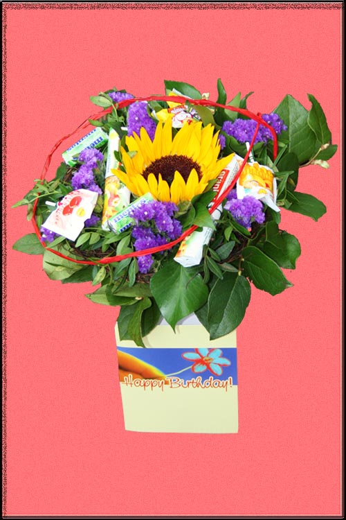 Eines meiner Geburtstagsgeschenke ... ein Blumenstrauß mit Süßigkeiten (Nervennahrung) ... eine wirklich geniale Idee.