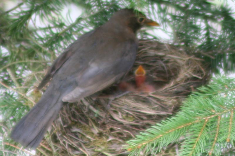 Das Foto entstand am 26.04.2008 so gegen 15 Uhr und ist die Fortsetzung der Fotos vom 12. und 13.04 ... die Eier sind weg und die 3 "Vogelbabies" sind geschlüpft. Die "Mama" hat alle Hände voll zu tun um genügend Futter für die 3 heranzuschaffen. |