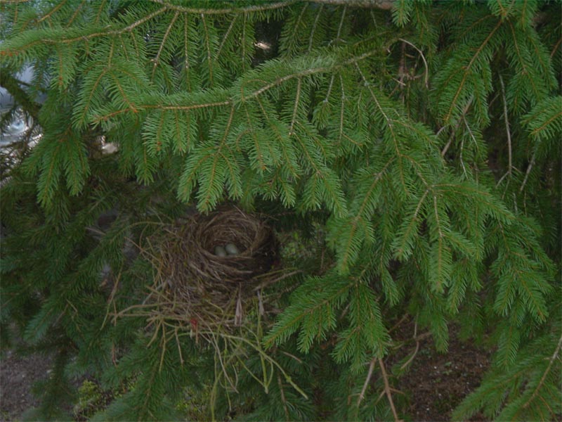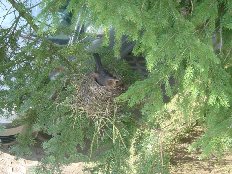 Dieses Foto entstand am 12.04.2008 um 18 Uhr 15. Das Vogelnest befindet sich im Garten meiner Mutter. Es war schon unglaublich interessant den Vogel beim Bau des Nests zu beobachten ... vorallem wie schnell er das geschafft hatte ... tja und jetzt befinden sich 3 Eier in dem Nest welche er bereits ausbrütet.