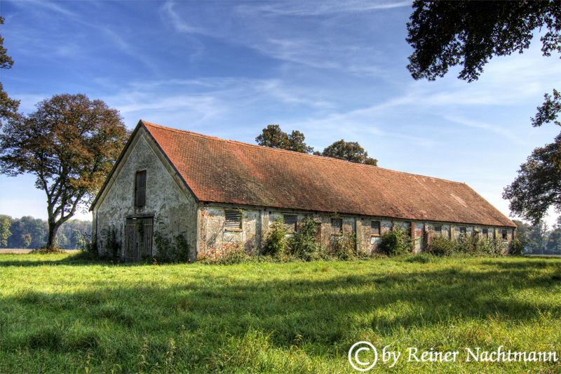 Zu finden ist diese Scheune in der Nähe von Schloss Grünau bei Neuburg a. d. Donau.
