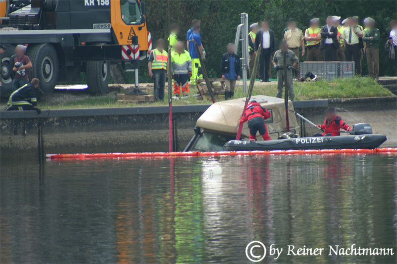 Bei einer routinemäßigen Überprüfung der Donau an der Bertoldsheimer Staustufe entdecken Arbeiter des Kraftwerkbetreibers EON am 11.05.2011 ein Fahrzeug und verständigen die Kripo.