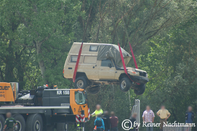 Am 12.05.2011 hebt schließlich ein Schwerlastkran das Fahrzeug aus der Donau, es handelt sich tatsächlich um den Toyota Landcruiser des vermissten Wellheimer Ehepaars.