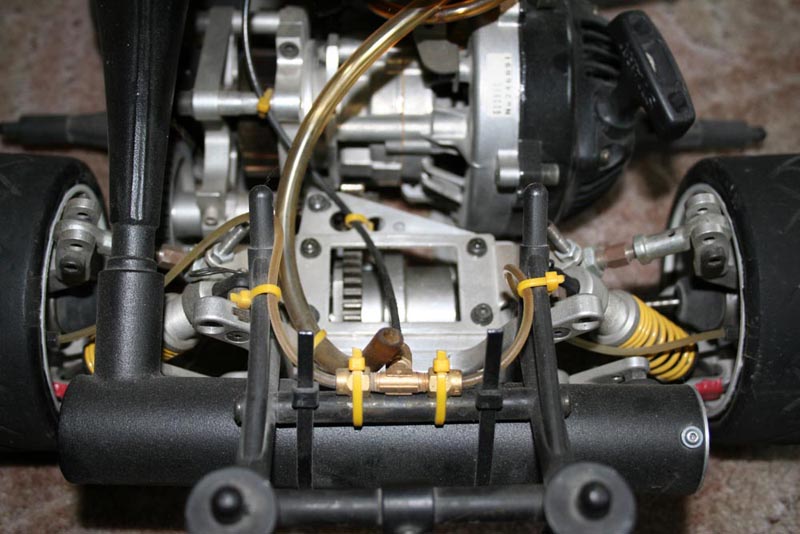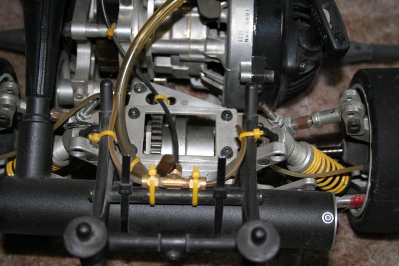 Breite ca. 40 cm, Länge ca. 90 cm, Gewicht ca. 10kg, Höchstgeschwindigkeit 80 - 100 km/h (je nach Übersetzung) Leistung ca. 4 PS, 8mm Alu-Chassis gefräst, Zenoah G230RC Motor, FG Big-Power Resonanzschalldämpfer, Airbox mit K&N Luftfiltereinsatz, einstellbares Alu-Differential mit Stecksystem, Alu-Querlenker unten und oben an Vorder- und Hinterachse, Kugelstabilisator an Vorder- und Hinterachse, Alu-Stoßdämpfer mit Volumenausgleich an Vorder- und Hinterachse, Alu-Achsböcke vorne, Alu-Achsschenkel vorne und hinten, Alu-Achsschenkelverlängerung, Hydraulische Scheibenbremse an Vorder- und Hinterachse, Alu-Servo-Saver B, Alu-Hinterachsunterlage, Alu-Getriebeplatte, Alu-Zahnrad mit 23 Zähnen, Alu-Zahnradmitnehmer, 10 mm Alu-Gelenkkugeln, entstörter Zündkerzenstecker, Schaumstoff-Frontrammer, Kohlefaser-Seitenschutz, Empfängerbox, Wettbewerbsreifen mit Reifeneinlagen, Alu-Einfederwegbegrenzung hinten, Tuning Stoßdämpferfedern (verschiedene Sätze), 3-Backenkupplung, Kohlefaser Karosseriehalter vorne, Versteifung für Vorderachsbock A + B mit Stoßdämpferhalterung aus Kohlefaser, Malossi Unterdruckdose, Fahrzeug komplett mit Hochleistungskugellagern ausgestattet.